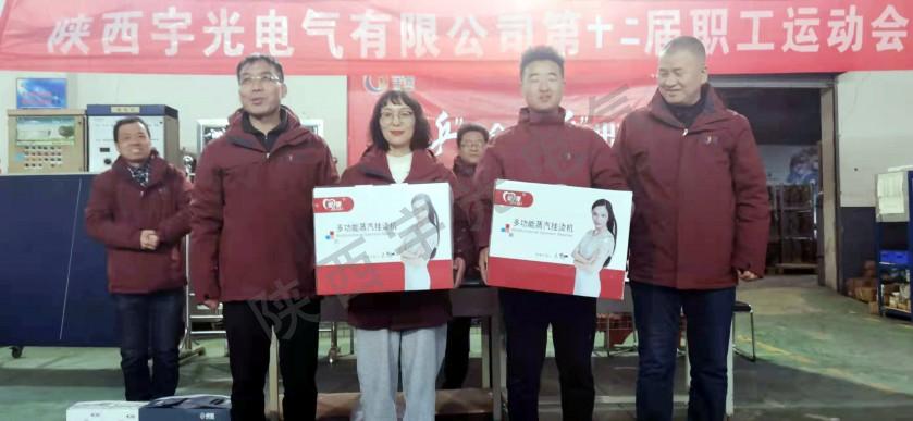 由公司总经理吴总、杨总分别为乒乓球比赛男、女子组第一名获得者颁奖